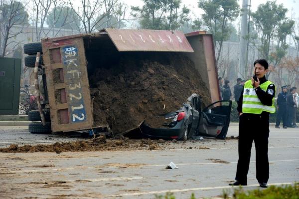 合肥夺命渣土车压扁轿车 本月5次车祸(图)