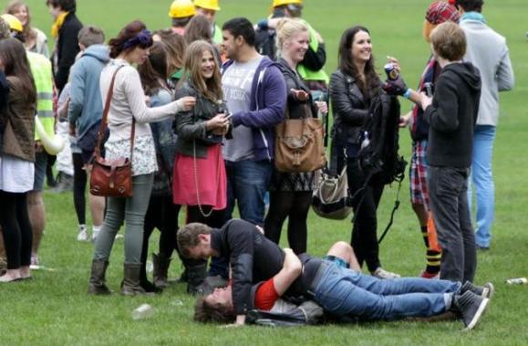 两千剑桥学生公园狂欢脱裤 女生用避孕套喝酒(10)